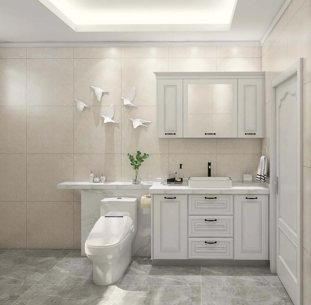Este tocador de baño se centra en la comodidad del usuario y cuenta con manijas y cajones fáciles de usar que brindan un funcionamiento suave. La altura y la posición se consideran cuidadosamente para garantizar la comodidad de los usuarios de todas las edades y habilidades, haciendo que las rutinas diarias sean más placenteras y eficientes. El material de PVC blanco no sólo mejora la estética del baño sino que también ofrece beneficios prácticos, como la facilidad de limpieza, lo que contribuye a un ambiente higiénico en el baño.